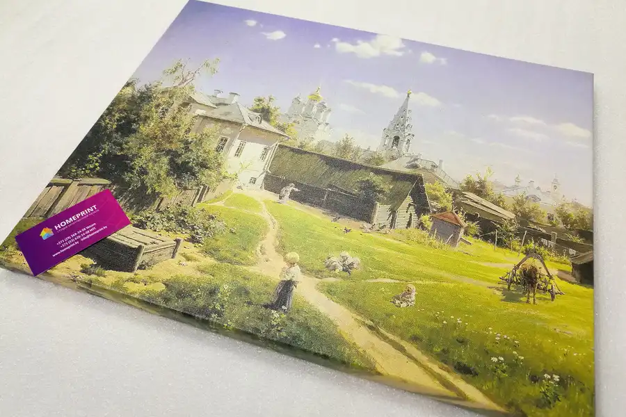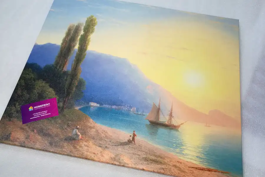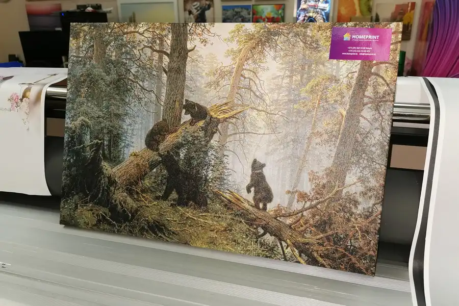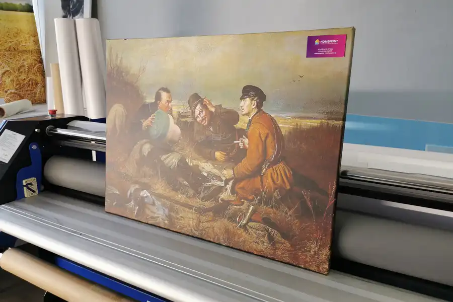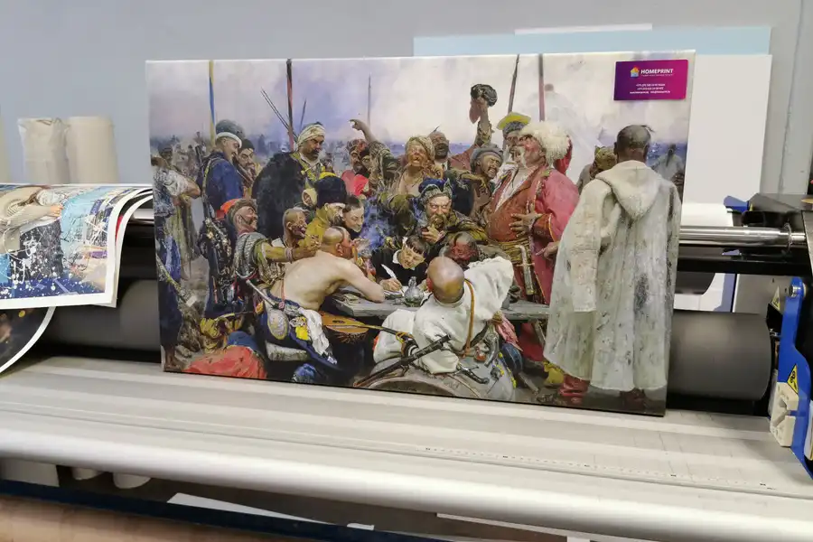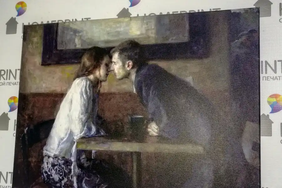 - Репродукции не стоит печатать на синтетическом холсте. Синтетический холст имеет гладкую поверхность и не передает ощущения настоящей картины. Синтетика со временем провисает.