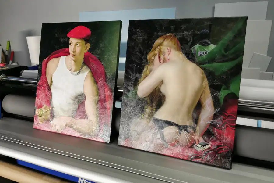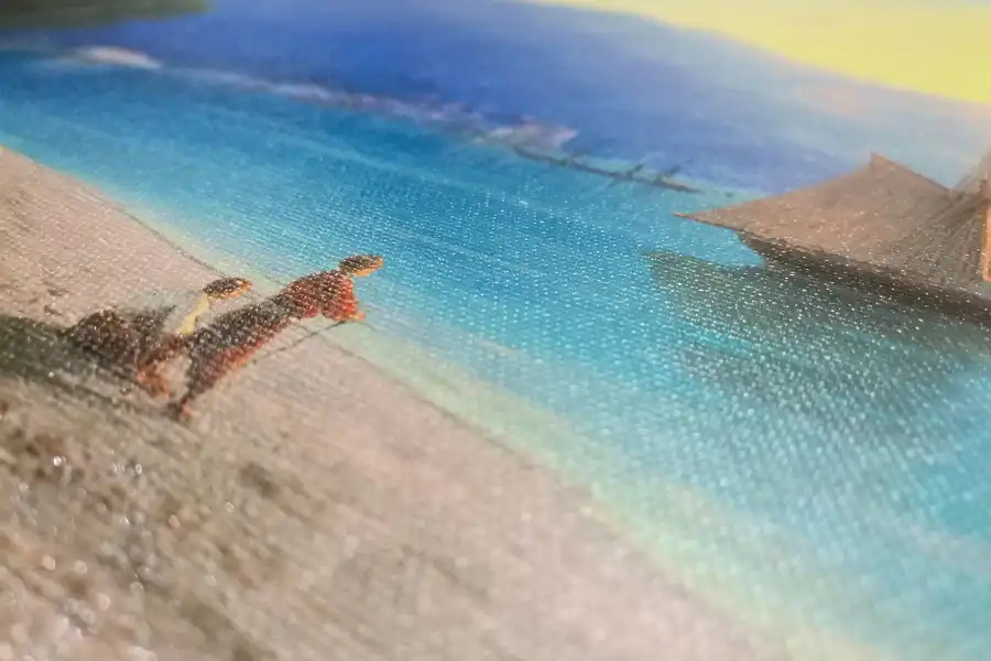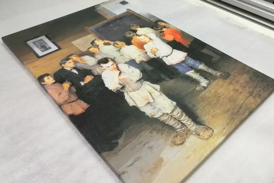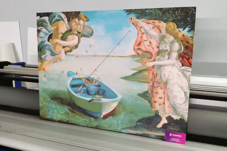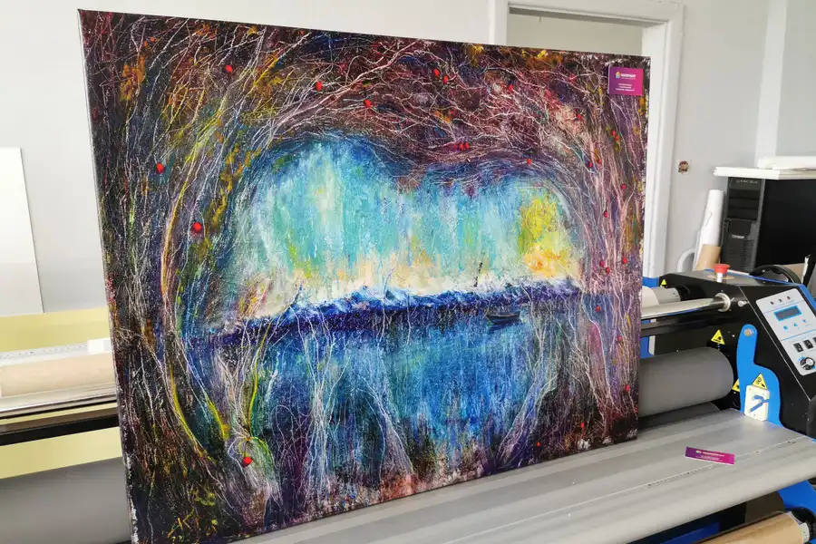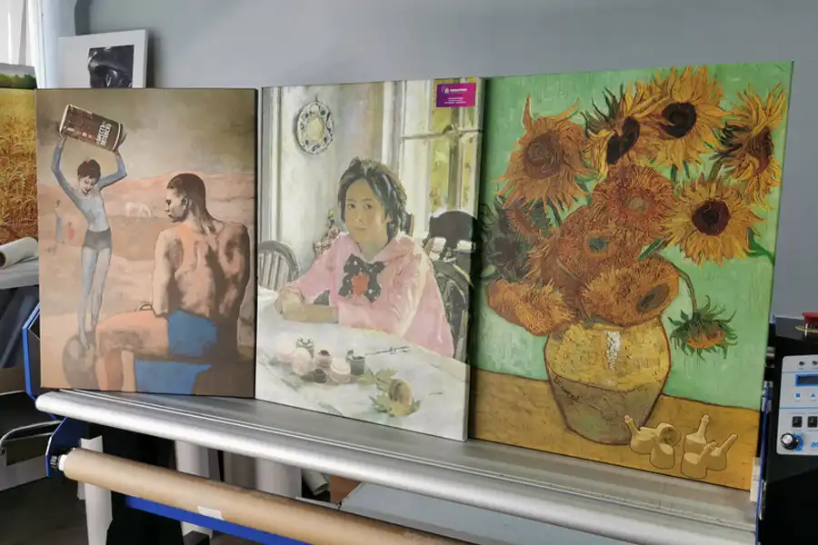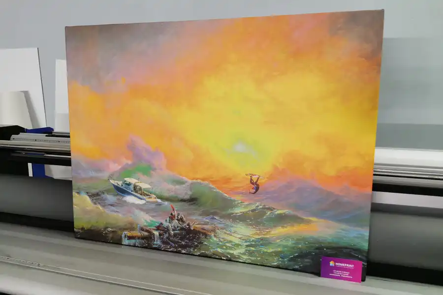 - Репродукции не стоит печатать на синтетическом холсте. Синтетический холст имеет гладкую поверхность и не передает ощущения настоящей картины. Синтетика со временем провисает.